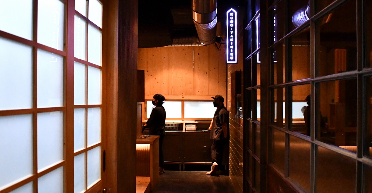 หากมองแค่ระดับสายตาโดยไม่ได้เงยหน้าขึ้นไป ใคร ๆ ก็คงคิดไม่ถึงว่าจะมีร้านอาหารขนาดยักษ์ที่สามารถเรียกได้ว่าเป็นคฤหาสน์ญี่ปุ่นหลังงามทั้งหลังซ่อนตัวอยู่ที่ชั้นบนของ DND (พิกัดไนต์ไลฟ์ที่ชาวเอกมัยรู้จักกันดี) หากแต่บรรยากาศข้างบนกลับตรงข้าม ด้วยการเป็นร้านอาหารญี่ปุ่นสุดหรูที่ให้กลิ่นอายแบบลัทธิเซนนิ่ง ๆ สงบ ๆ ด้วยการใช้ไม้สีอ่อนทั้งร้าน มีแบ่งโซนเป็นห้องทานชาบู โซนร้านซูชิ โซนเอาต์ดอร์กึ่งสวนในร่มที่ด้านหลัง และไฮไลต์คือโซนยากินิคุที่เสิร์ฟเป็นคอร์สโอมากาเสะเท่านั้น