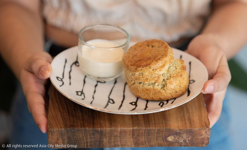 สั่งเครื่องดื่มมาพร้อมแล้ว ก็อย่าลืมสั่งเค้กมาทานคู่กัน เพราะขนมโฮมเมดของที่นี่เป็นฝีมือของคุณเต้เองที่อบใหม่ในทุก ๆ เช้า ไม่ว่าจะเป็น Earl Grey Scone (45 บาท) เสิร์ฟพร้อมซอสวานิลารสหวานน้อย และ Lemon Tart (89 บาท) ทาร์ตมะนาวรสเปรี้ยวเนื้อแน่นที่ทุกคนต้องชอบแน่นอนอยู่แล้ว