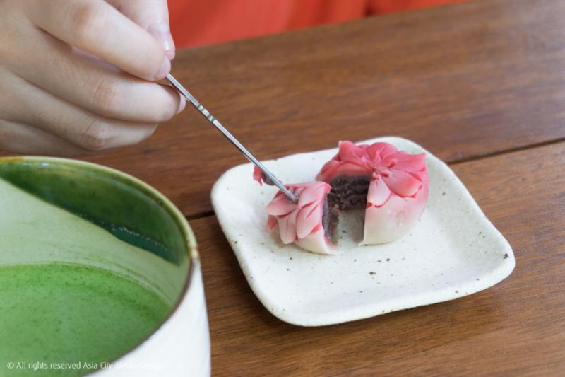ซึ่งขนมและชาที่เราได้ทานในวันนี้ก็มีแต่ตัวเด็ด ๆ ทั้งนั้น เริ่มจาก Matsukasa Ceremonial Set (239 บาท) จะเป็นชุดชามัทฉะที่เสิร์ฟคู่กับ วากาชิ ขนมเบสิคไส้ถั่วแดงไว้ทานคู่กับชา โดยจะเปลี่ยนหน้าตาไปตามเทศกาลหรือแรงบันดาลใจของคนทำขนม ตัวชาจะมีรสขมและเค็มนิด ๆ หรือที่คนญี่ปุ่นเรียกกันว่า รสอูมามิ นั่นแหล่ะ ซึ่งก็คือรสชาติของวัตถุดิบแท้ ๆ จากธรรมชาติ มาต่อกันที่ Matcha Roll (119 บาท) ขนมแยมโรลที่ใช้ชาสดไม่ผ่านการอบ จึงคงรสชาติของชาไว้เต็มที่ กินคู่กับครีมและแป้งนุ่ม ๆ บอกเลยว่าฟิน