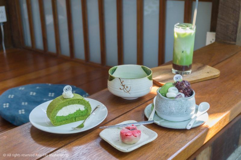 มาพูดถึงอาหารกันบ้าง ที่นี่จะมีชาให้เราได้เลือกดื่มหลัก ๆ อยู่ 4 ชนิด มีตั้งแต่ Matcha, Sencha, Gyokuro และ Hojicha ซึ่งล้วนแต่นำเข้ามาจากญี่ปุ่นทั้งนั้น ถ้าใครเลือกไม่ถูกว่าควรจะทานตัวไหนดี พนักงานที่ร้านจะแนะนำให้เราเอง โดยเขาจะหาชาที่เหมาะกับความชอบของเรา ชอบแบบเข้ม ๆ ชอบแบบอ่อน ๆ พวกเขาจัดให้ได้หมดเพราะมีให้ชาให้เลือกเยอะ หลายชนิด หลายเกรด ให้เราดื่มชาเขียวญี่ปุ่นได้ง่ายยิ่งขึ้น ซึ่งสูตรชาเหล่านี้คุณเป้งก็ได้ข้ามน้ำข้ามทะเลไปเล่าเรียนมาจากญี่ปุ่นเลยนะ