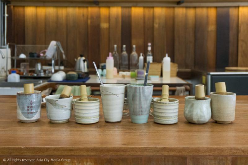 โดยที่ประเทศญี่ปุ่น การชงชาถือเป็นศาสตร์อย่างหนึ่งที่เกี่ยวพันกับประวัติศาสตร์ของญี่ปุ่นมาอย่างช้านาน ซึ่งจะต้องมีองค์ประกอบและสถานที่ที่ครบองค์ แต่บอกเลยว่าพิธีเหล่านี้ใช้เวลานานมาก คุณเป้งจึงดึงแค่ตัว concept มา นั่นก็คือ ความตั้งใจในการชงชาให้แขกผู้มาเยือน และได้นำมาประยุกต์ใช้กับอุปกรณ์จากญี่ปุ่นอย่าง Chasen ที่ใช้ตีชาผง และ Chawan ชามที่ถูกออกแบบมาตั้งแต่การเลือกชนิดดินไปจนถึงรูปทรง เพื่อการชงชาโดยที่ไม่เสียรสอูมามิ