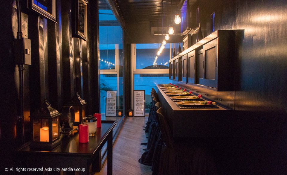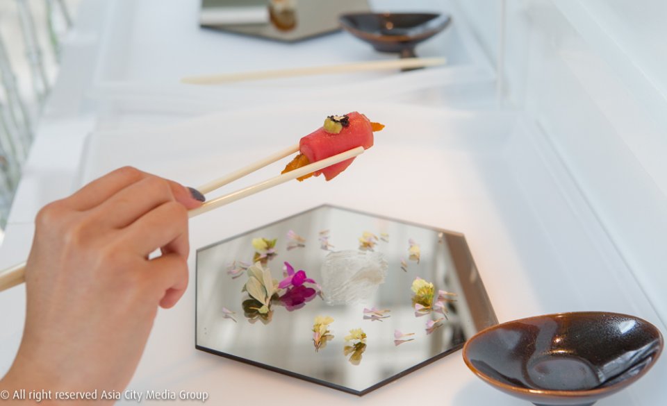 ซูชิแบบ Chef's Table ของที่นี่จะมาในสไตล์ฟิวชั่น แบ่งเป็นคอร์สมื้อเที่ยงในราคา 1999++ บาท (7 คำ) และมื้อเย็นในราคา 2999++ บาท (10 คำ) กิมมิกพิเศษคือไอเดียการเลือกใช้วัตถุดิบแปลก ๆ มารังสรรเมนูให้แต่ละคำของซูชิที่นี่มีความโดดเด่นและเอกลักษณ์เฉพาะตัว
