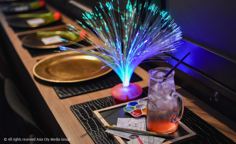 ห้องแห่งความมืดที่คุณกันต์ รตนาภรณ์ เจ้าของร้านนี้การันตีกับเราว่าไม่เหมือนที่อื่นแน่นอน ความพิเศษอยู่ที่วัตถุดิบหลักคือเป็นแบล็คทรัฟเฟิล ซึ่งจะทยอยออกมาให้เห็นใน 13 จานหลักที่นำออกมาเสิร์ฟ