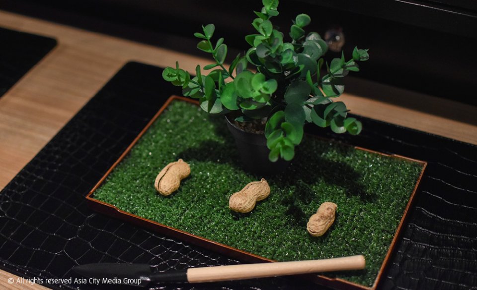 Food Is Art คือคอนเซ็ปท์หลักของที่นี่ หมายถึงการผสมศิลปะทุกแขนงไว้ในอาหารแต่ละจาน อย่างเช่นจานที่เราชอบมากคือ Tree Nuts จานนี้ ที่แฝงความหมายลึกซึ้งของงานศิลปะที่อาจมองไม่เห็นแค่รูปลักษณ์ภายนอก แต่ต้องเข้าใจถึงแก่นแท้ด้านในด้วย แล้วจะรู้ว่ามีอะไรซ่อนอยู่ อย่างด้านในของถั่วที่เห็นก็จะเป็นไข่มุก 3 รสคือโยเกิร์ต ลิ้นจี่ และแอปเปิ้ล