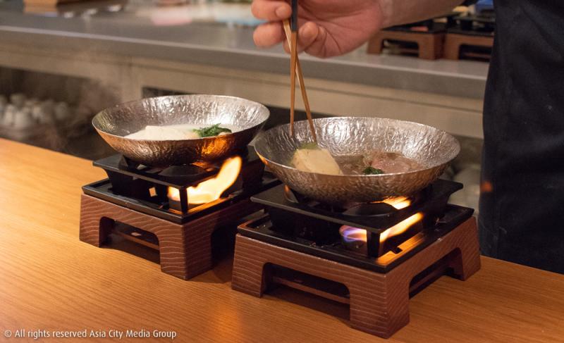 ส่วนคอร์สที่ 12 เป็นเหมือนไฮไลท์อย่างหนึ่งของร้านนี้เลยก็ว่าได้ ด้วยเนื้อวากิว A5 จากฮอกไกโด ทำมาเป็นนาเบะไซซ์กำลังพอดีท้อง พร้อมพระเอกอย่าง Momen Tofu ที่เข้ากันดีกับเนื้อและน้ำซุปแบบหาคนมาเอาชนะได้ยากมาก ซึ่งถ้าใครไม่ทานเนื้อ ก็สามารถแจ้งทางร้านล่วงหน้าให้เปลี่ยนเมนูนี้เป็นนาเบะเนื้อปูฮอกไกโดได้เหมือนกันนะ