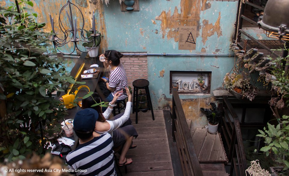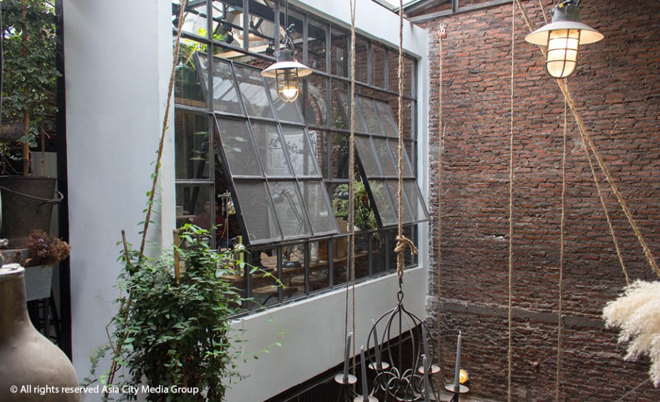 ตึกแถวห้องแคบ ๆ ในตรอกแห่งนี้ถูกแปลงร่างให้เป็นเหมือนเรือนกระจกทรงสูง ครอบด้านบนด้วยหลังคากระจก และถูกตกแต่งด้วยเฟอร์นิเจอร์ไม้ อิฐ เหล็ก รวมไปถึงจานชามเซรามิค เครื่องมือเครื่องไม้อุปกรณ์ทำสวน และต้นไม้นานาชนิดที่ให้ฟีลหลุดไปอยู่ในโรงนาฝั่งยุโรปยังไงอย่างงั้น
