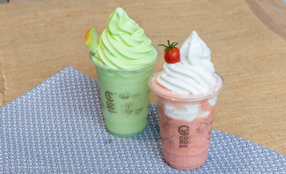 มาถึง Coro Harvest แล้วห้ามพลาดเมลอนกับมะเขือเทศเชอร์รีปั่นเชียวนะ ตบท้ายด้วยของหวานอย่างเมลอนและมันหวานลาวา (195 บาท) เสิร์ฟมาพร้อมกับไอศกรีม เราชอบตัวมันหวานเป็นพิเศษเพราะเนื้ออุ่นๆ กินแล้วอบอวลอยู่ในปาก หม่ำไอศกรีมเย็นๆ ตามก็ช่วยเพิ่มความสดชื่นได้อีกด้วย