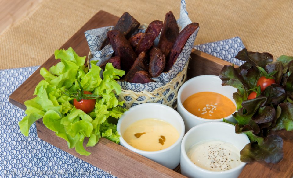 หยุดความคิดไปเลยว่าผักเยอะขนาดนี้จะต้องเป็นอาหารคลีนๆ ลีนๆ แห้งๆ เพราะเมนูมาครบทุกหมวดหมู่ตั้งแต่ออร์เดิร์ฟ อาหารจานหลัก ของหวาน เครื่องดื่ม จนไปถึงไอศกรีมซอฟต์เสิร์ฟ แน่นอนว่ามีเมนูยอดนิยมอย่างเมลอนคัตสึโอะ (145 บาท) เมลอนกับปลาย่าง บวกกับมะเขือเทศเชอร์รี่ ราดด้วยซอสอีกที อีกเมนูเด็ดคือมันม่วงญี่ปุ่นทอด (145 บาท) มันม่วงทอดอุ่นๆ คลุกกับผงปาปริก้า เสิร์ฟพร้อมซอส 3 ฤดู