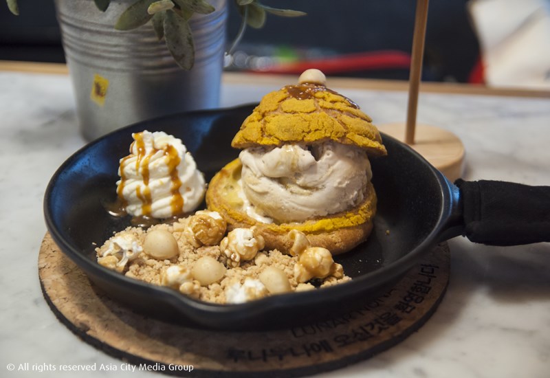 สายขนมเกาหลีเตรียมเมินบิงซูไปชั่วคราว เพราะตอนนี้มีร้านขนมสไตล์เกาหลีมาให้ลองอีกหนึ่งร้าน นั่นคือ Lunar Nuna Korean Dessert Bar ที่เกิดจากความชอบกินขนมของ ออม-สุชาร์ มานะยิ่ง ดาราสาวที่ติดใจขนมเกาหลีจนเอากลับมาเปิดที่นี่ ขนมที่ทำเอาหลายคนว้าวเห็นจะเป็น Dutch Baby ขนมปังชิ้นใหญ่ที่นำแป้งแพนเค้กไปอบจนฟูใหญ่เท่าชามยักษ์ ก่อนจะตกแต่งด้วยท็อปปิ้งแบบต่างๆ เช่น Tangy Yuja Marmalade Dutch Baby (245 บาท) ที่ตกแต่งด้วยส้มมาร์มาเลด หรือจะเป็น Korean Banan Mulky Way Dutch Baby (245 บาท) ที่เสิร์ฟกล้วยพร้อมซอสนมกล้วยเกาหลี และไอศกรีมวนิลา