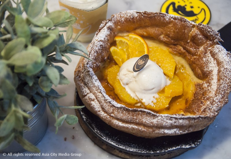 นอกจาก Dutch Baby ที่เป็นพระเอกแล้ว พระรองที่นี่ก็ไม่น้อยหน้า โดยเฉพาะกับชูครีมที่เอามาผสมไอศกรีมนุ่มครีมอย่าง Giant Star Sea Salted Caramel Popcorn Choux Cream (235 บาท) ชูครีมชิ้นยักษ์เสิร์ฟกับไอศกรีมซีซอลท์คาราเมล และป็อปคอร์นในรสเดียวกัน แต่ที่เราชอบอีกอย่างเห็นจะเป็นแพนเค้กหนานุ่มเด้งดึ๋งอย่าง ซูเฟล่แพนเค้ก (235 บาท) ที่ทั้งรสช็อกโกบานานา และซูเปอร์ชีสกินกับครีมหวานลงตัว