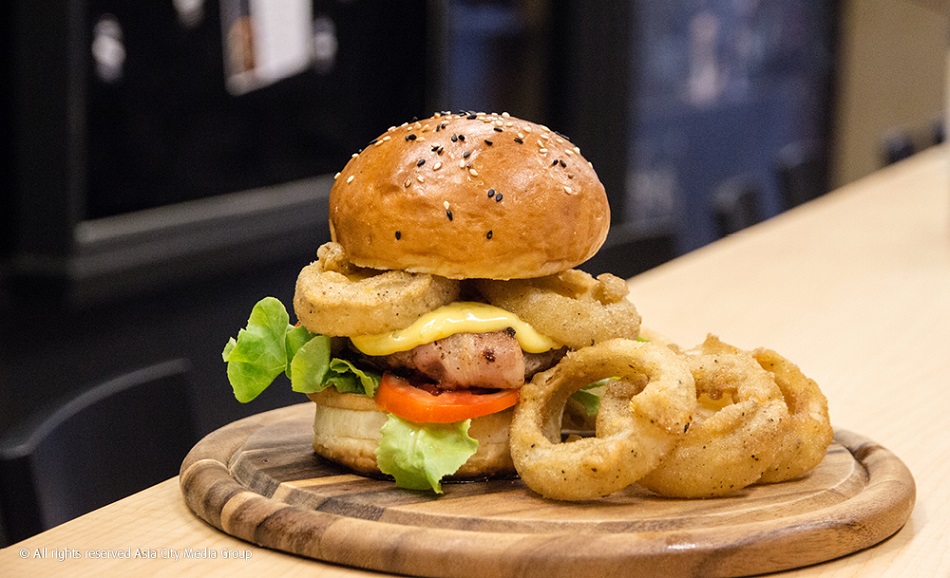 ใครเคยไปเดินตลาดอ่อนนุช (ที่ตอนนี้ถูกรื้อไปเรียบร้อยแล้วน่ะ) น่าจะเคยเห็น Burgers and Bangers กันอยู่บ้าง ตอนนี้เชฟปูเป้ขอเอาใจคนรักฟาสต์ฟู้ดกันกับร้านเบอร์เกอร์สไตล์อเมริกัน โดยมีให้เลือกถึง 5 แบบ ได้แก่ เนื้อวัวห่อเบคอนกับเชดด้าชีส (280 บาท), เนื้อหมูกับบลูชีส (270 บาท), เนื้อแกะนิวซีแลนด์กับบรีชีส (290 บาท), ไก่กับมอสซาเรลล่าชีส (240 บาท) และมังสวิรัติ (230 บาท) เลือกเครื่องเคียงได้ฟรี 1 อย่าง (มันฝรั่งทอด มันหวานทอด หอมทอดเบียร์ หรือสลัดมันฝรั่ง)
