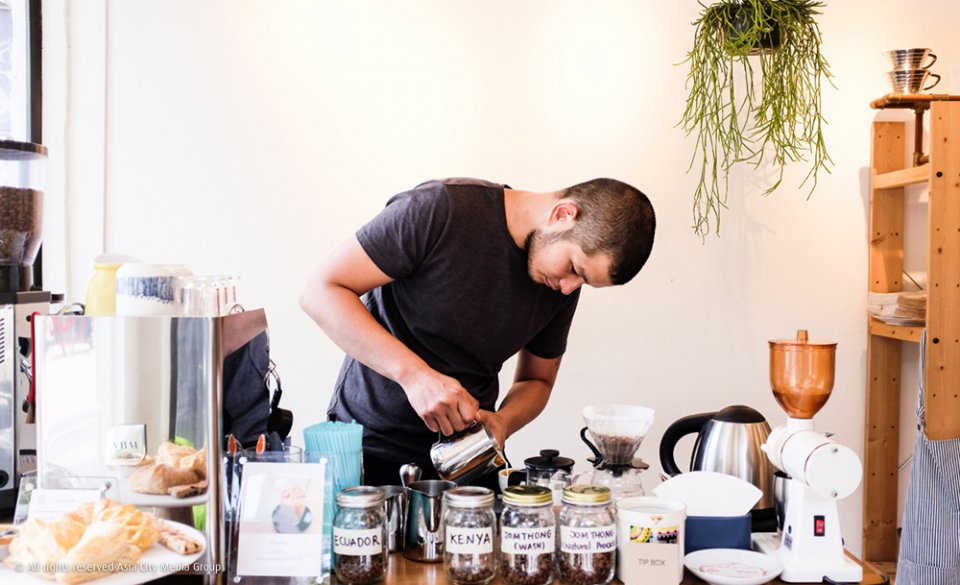 เมล็ดกาแฟที่ใช้มาจาก Brave Roaster และ Ceresia Coffee Roasters หรือจะลอง Latte หรือ Flat White (80 บาท) ที่ใช้เมล็ดกาแฟจากเคนยาและโคลอมเบียก็มีเหมือนกัน นอกจากนี้ยังมี Cold Brew Coffee หรือกาแฟที่ชงด้วยน้ำเย็นให้ลองดื่มด้วยนะ แต่ถ้าใครอยากเพิ่มความหวานมาตัดรสขมของกาแฟก็ยังมี Affogato (105 บาท) ไว้เป็นตัวเลือก ของหวานมีวาฟเฟิลวานิลลาเคลือบช็อกโกแลต (120 บาท) โปะด้วยไอศกรีมวานิลลา ราดซอสช็อกโกแลตแล้วโรยอัลมอนด์อีกทีก็อร่อยเข้ากันกับกาแฟดีนะ นอกจากนี้ทางร้านยังมีเมนูอาหารเช้าด้วย เป็นชุดข้าวหมูกระเทียมกับแกงเขียวหวาน เลือกเครื่องดื่มได้ 1 อย่างตามใจชอบ (145 บาท) มีบริการส่งถึงที่บริเวณพญาไท ค่าส่งประมาณ 20-30 เท่านั้นเองจ้า