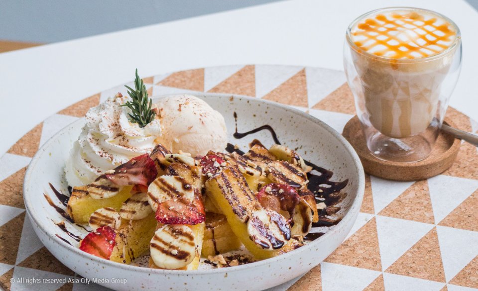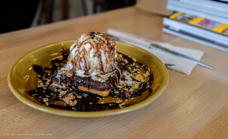 เมนูส่วนใหญ่เอาใจคนรักของหวานเป็นพิเศษ ไม่ว่าจะเป็น Less Guilty Chocolate Sundae (185 บาท) เค้กช็อกโกแลตไร้แป้งเนื้อแน่นๆ เสิร์ฟพร้อมไอศกรีมวานิลลาราดซอสสตรอว์เบอร์รี่และวิปครีม หรือฮันนี่โทสต์หวานนุ่ม (195 บาท) ราดซอสช็อกโกแลตกับน้ำผึ้ง ท็อปด้วยไอศกรีมวานิลลาและวิปครีมอีกที และมีกล้วยกับสตรอว์เบอร์รี่หั่นแว่นให้กินคู่กันด้วยนะ บอกเลยว่ากินกัน 2-3 คนได้สบาย อีกอย่างที่เราอยากให้ลองคือโกโก้ร้อน (130 บาท) มีคุกกี้ด้านบนให้เคาะเบาๆ จนแตกแล้วค่อยจิบโกโก้ตามจ้า