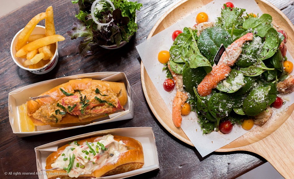 เราไม่อยากให้พลาด Lobster Roll (690 บาท) เป็นขนมปัง Brioche Bun สอดไส้ด้วยเนื้อล็อบสเตอร์เน้นๆ 60 กรัม มีซอสให้เลือก ได้แก่ มายองเนสสไตล์ New England ซอสเม็กซิกัน และซอสแซ่บสไตล์ต้มยำสุดเด็ด เสิร์ฟคู่กับมันฝรั่งทอดกรอบๆ หรือถ้าใครอยากจะกินกุ้งล็อบสเตอร์นึ่งล้วนๆ เลยก็มีนะ (1,690 บาท ได้ 700-800 กรัม) ราคาอาจจะแรงไปนิด แต่ถ้าได้กินล็อบสเตอร์ดีๆ แบบนี้ก็คุ้มอยู่น