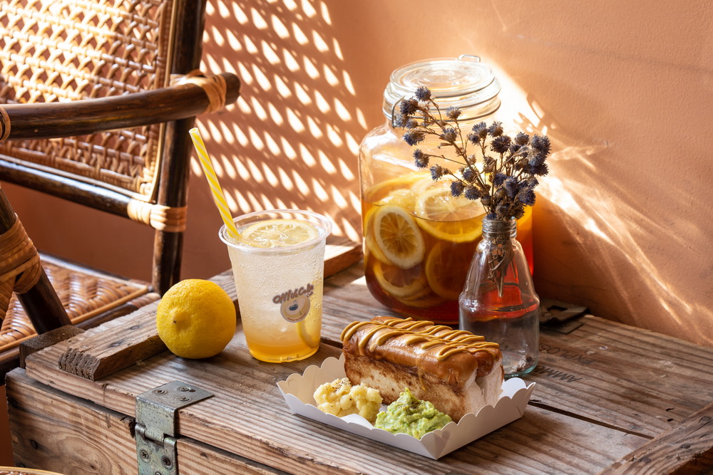 กับอีกเมนูที่เราอยากให้ลองสุด ๆ อย่าง Hot Dog with Avotato (159 บาท) คอมบิเนชันแสนลงตัวของฮอตดอกหมูสไตล์คลาสสิก ที่เสิร์ฟเคียงมากับ 'Avotato' อะโวคาโดมันบดที่เพิ่งเคยเห็นร้านนี้ทำเป็นที่แรก แถมยังตั้งชื่อได้ตลกตามสไตล์ร้านนี้ ที่ก่อนหน้านี้มีเมนูสมูทตี้ซิกเนเจอร์ชื่อ Avoothie (Avocado+Smoothie) กับ Affocado (Affogato+Avocado) มาแล้ว สามารถสั่งมาทานคู่กับไอเทมใหม่ล่า อย่าง Homemade Honey Syrup Soda (120 บาท) น้ำผึ้งดองผลไม้สูตรธรรมชาติที่แรนด้อมไปเรื่อย ๆ ในแต่ละวัน บางวันก็ดองเลมอน บางวันก็เป็นส้ม หรือบางวันก็เป็นผลไม้ตามฤดูกาลอื่น ๆ เอาไว้ทำเป็นไซรัปธรรมชาติท็อปด้วยโซดาเย็น ๆ ให้รสหอมหวานธรรมชาติแบบไม่ต้องใส่น้ำตาลหรือกลิ่นจากไซรัปสังเคราะห์เพิ่ม