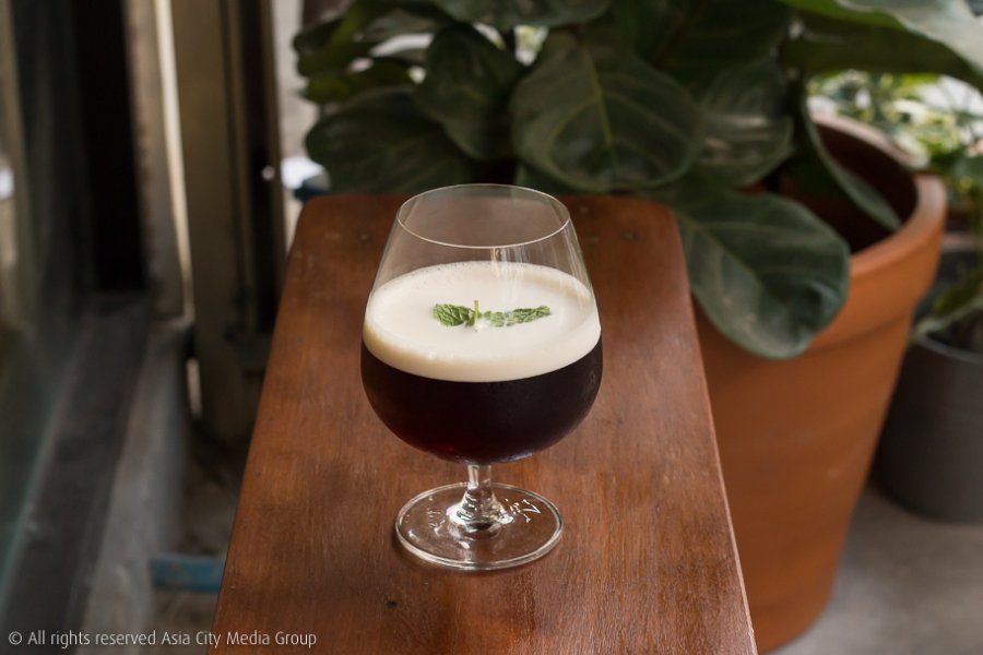 ใครที่อยากลองของซักหน่อย เราแนะนำให้สั่งซิกเนเจอร์ของร้านนี้อย่าง Hipster Moroccan Nitro (130 บาท) มาลอง ซึ่งพี่ส้มใช้ชาดำผสมกับใบมิ้นต์และนำไปสกัดเย็นด้วยวิธี cold brew หลังจากนั้นจึงนำไปใส่เครื่องไนโตร ซึ่งจะดูดเอาก๊าซอื่น ๆ ในของเหลวออกไป เหลือแต่ไนโตรเจน จนทำให้เกิดเป็นเครื่องดื่มฟองนุ่ม มีความอบอวลของกลิ่นชา ผสมด้วยรสหวานอ่อน ๆ ของน้ำตาลคาราเมล