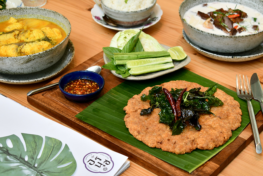 ทีเด็ดสูตรคุณแม่อรนุชที่เราไม่อยากให้ใครพลาดด้วยประการทั้งปวง ก็ไล่มาตั้งแต่ ต้มเนื้อเค็มยอดมะพร้าวอ่อน (220 บาท) ที่ให้ฟีลคล้ายทานต้มข่าไก่ แต่เปลี่ยนพาร์ตเนื้อสัตว์เป็นเนื้อเค็มที่เพิ่มความอูมามิและมิติใหม่ ๆ ให้แกงกะทิโบราณชามนี้ได้เป็นอย่างดี ทานคู่กับของโปรดของเราอีกเมนูอย่าง ลาบหมูทอดแพนเค้ก (180 บาท) ซึ่งก็มิติใหม่อีกเช่นกัน เพราะทางร้านเลือกเปลี่ยนวิธีจากการทำลาบหมูปั้นก้อนปกติ มาทำเป็นแพนเค้กทรงแบนและใหญ่ ซึ่งให้เทกซเจอร์ที่แตกต่างจากลาบทอดทั่วไป เหมาะจะทานคู่กับเมนูแกงเพื่อตัดเลี่ยน