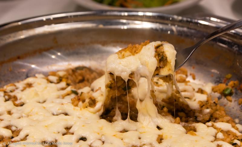 เพราะเราสั่งเซ็ตที่มาพร้อมซุปซีฟู้ดหม้อไฟรสเผ็ดกำลังดีมาด้วย ในหม้อมาเต็มทั้งกุ้ง ปู หอย เต้าหู้ และผักต่าง ๆ ซดซุปเผ็ดอ่อน ๆ ให้คล่องคอ พอกินหมดแล้วเราแนะนำให้สั่งชุดข้าวผัดชีสมาเพิ่มด้วย โดยพนักงานจะเอาข้าว สาหร่าย ไข่กุ้ง และชีสที่เหลือมาผัดกับน้ำซุปที่เหลืออยู่ ขอบอกว่าอร่อยเหาะเลยจ้า