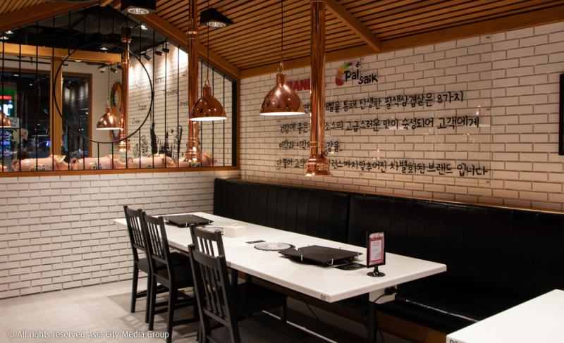 Palsaik Thailand ตั้งอยู่ที่ชั้น 2 ศูนย์การค้าสยามเซ็นเตอร์ บริเวณร้านโคคาสุกี้เก่า ซึ่งถ้าใครเคยได้ไปร้านที่เกาหลีมาแล้วก็คงรู้ว่าลีกษณะการตกแต่งร้านของเขาจะออกธรรมดา ๆ แบบดั้งเดิมหน่อย ๆ (เน้นความอร่อย ไม่เน้นหน้าตาอะไรแบบนั้น) แต่ไม่ใช่กับที่นี่ เพราะที่นี่ตกแต่งร้านแบบโมเดิร์น หยิบเอาโทนสีขาวและคอปเปอร์มาใช้ตัดกันได้อย่างลงตัว คุณฝนบอกว่าสีขาวจะช่วยขับจานิาหารและเนื้อหมูให้ถ่ายรูปออกมาสวยขึ้นนั่นเอง
