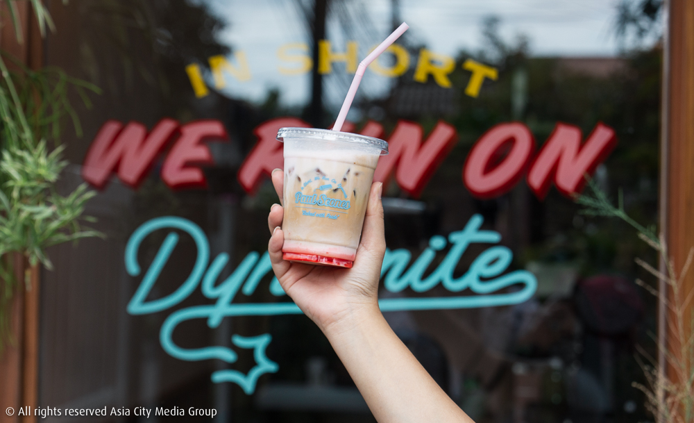 ให้ความสนใจอย่างถูกจุดกับคีย์ไอเทมหลักของร้านไปแล้ว เราอนุญาตให้หันมาสนใจเรื่องเครื่องดื่มต่อได้ เพราะจากที่เห็นว่าเขามีเครื่องกาแฟไซซ์เบ้อเริ่มอยู่กลางร้าน จะไม่ลองก็คงเสียดายค่ารถมาก ๆ จุด ๆ นี้เลยอยากแนะนำตัวคลาสสิกไว้จิบคู่สโคนในยามบ่ายอย่าง Black Coffee (60 บาท) และตัวพิเศษอย่าง Strawberry Field Forever Latte (80 บาท) ซึ่งเป็นการเอาสตรอว์เบอร์รีมา puree แล้วทานคู่กับกาแฟนม รสชาติไปได้ดีกับตัวเมล็ดกาแฟที่เลือกใช้เบลนด์จากบราซิลในโทนนัตตี้นิด ๆ ถือว่าเป็นมื้อบ่ายที่น่าจะถูกจริตทั้งสายฝอ. สายไม่ฝอ. และสายฮ็อปเปอร์ชาวกรุงเทพฯ แน่นอน