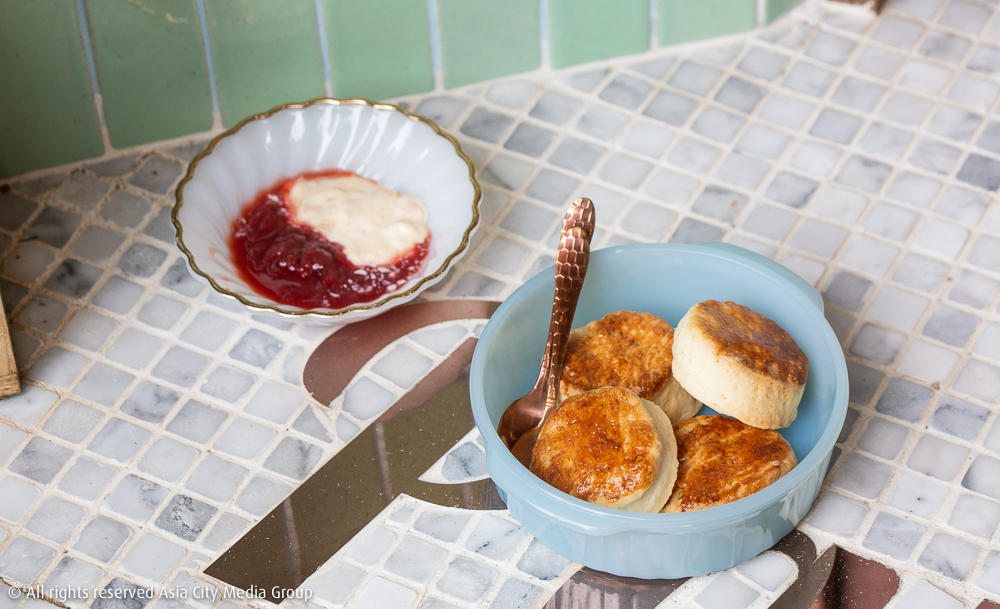 มาถึงร้านนี้แล้ว ก็อย่าลืมกินสโคนให้ถูกต้องตามตำรับ The Devonshire เมืองทางตะวันตกเฉียงใต้ของเกาะอังกฤษ คือการผ่าสโคนออกเป็นสองส่วนแล้วปาดคล็อตเต็ดครีมลงไปเป็นเลเยอร์แรก ตามด้วยแยมสตรอว์เบอร์รีท็อปด้านบน แต่ทั้งนี้ทั้งนั้นคือต้องเร็วนะ เพราะได้ข่าวมาว่าบางวันสโคนของร้านนี้ก็ขายหมดเกลี้ยงตู้ตั้งแต่ก่อนเที่ยงแล้วเด้อ!