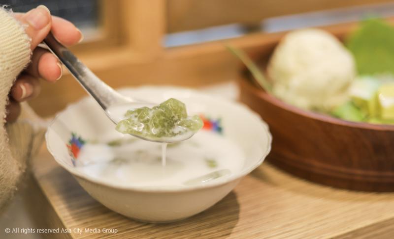 ปิดท้ายด้วยของหวานอย่าง อินทนิล (95 บาท) ขนมหวานสายกะทิจากภาคอีสานที่ใช้แป้งข้าวเหนียวมาปั้นเป็นก้อน มีความคล้ายขนมครองแครงผสมหยกมณี ใช้คลายความเผ็ดร้อนจากมื้อหนัก ๆ ของเราได้เป็นอย่างดี