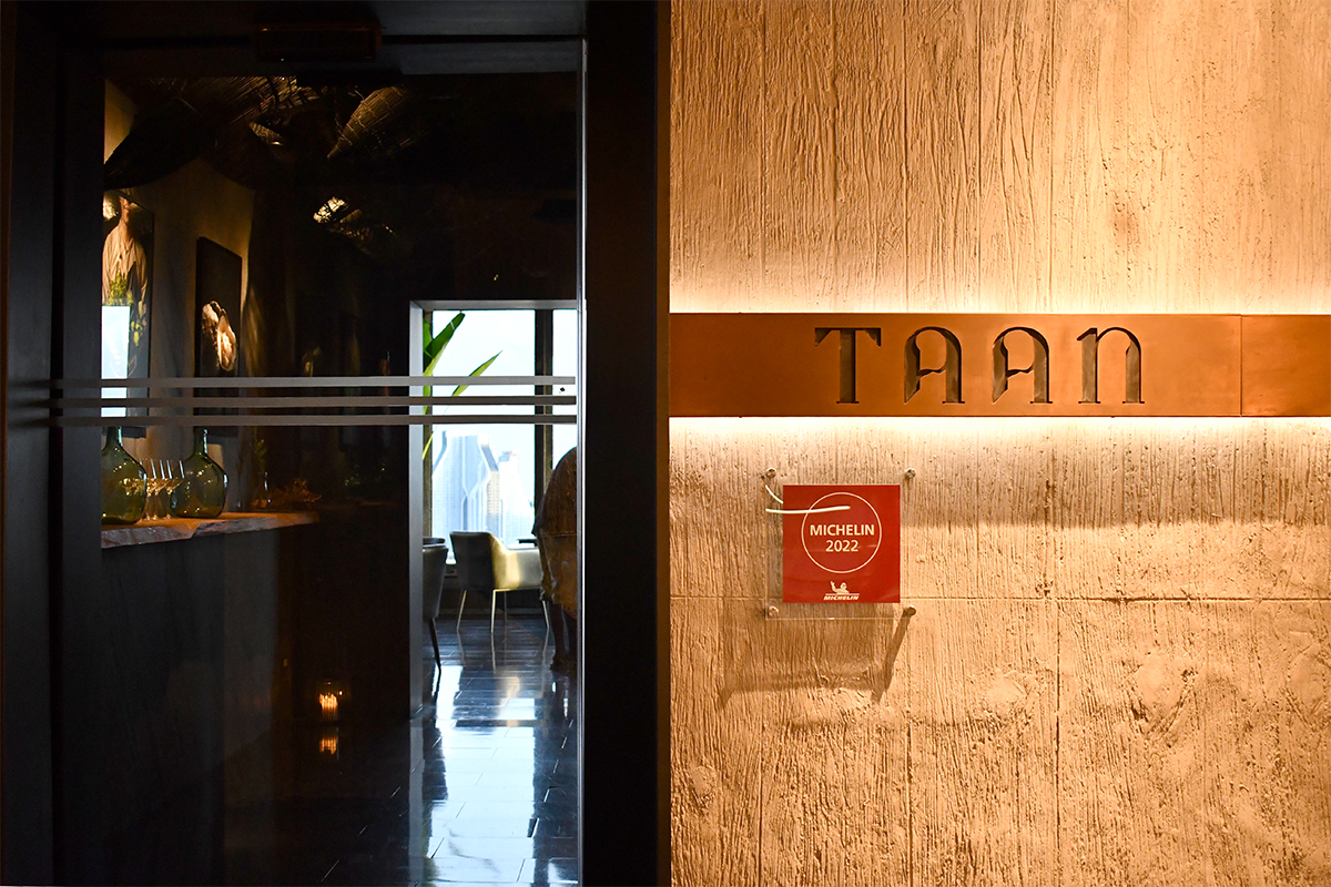 ด้วยความที่ TAAN Bangkok เป็นห้องอาหาร ณ ชั้นบนสุด (ไม่นับรูฟท็อป) ของโรงแรม Siam@Siam ที่ตั้งอยู่ใจกลางกรุงเทพเมืองฟ้าอมร ในระยะทางที่เดินจากสยามสแควร์มายังไม่ทันเหนื่อยก็ถึงแล้ว ใครที่จองร้านนี้ตั้งแต่ช่วง 6 โมงเย็น ก็จะได้เห็นความงามของวิวพระอาทิตย์ตกดินจากกระจกบานใหญ่ที่โอบล้อมห้องอาหาร พร้อมแสงไฟสุดตระการตาระยิบระยับจากตึกสูงระฟ้าในยามพลบค่ำ