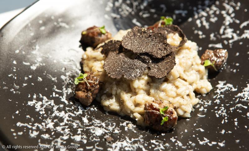 มาถึงเมนคอร์สกันบ้างกับเมนูที่เชฟตั้งชื่อว่า 'Ground and Grain' ข้าวสายพันธุ์ยุโรปที่ปลูกจากดินคุณภาพดีถูกนำมาทำเป็นรีซอตโต้สไตล์ Al Dente คือต้มแบบไม่สุกมาก ยังมีความกรึบ ๆ อยู่ตรงกลางเมล็ดข้าว เสิร์ฟมาพร้อมเนื้อวากิวจากออสเตรเลียที่ถูกขุนด้วยธัญพืชล้วน ๆ นำมาหั่นเป็นไซซ์ลูกเต๋าพอดีคำและดาดบนกระทะให้พอสุกเหมือนทำสเต็ก ท็อปด้านบนด้วยเห็ดทรัฟเฟิลดำที่มีเฉพาะช่วงฤดูหนาวเท่านั้น เอาจริง ๆ คือแค่ได้มากินเมนูนี้เมนูเดียวก็คุ้มค่ากับคอร์สราคา 1,690++ บาทแล้วเด้อ!