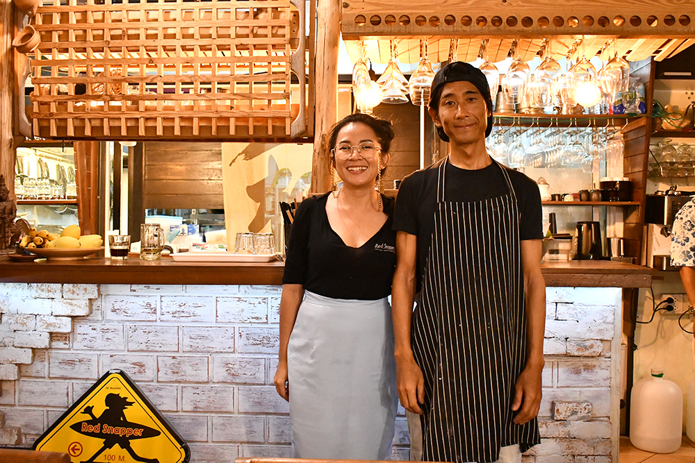 ถ้าให้เล่าเรื่องราวของ Red Snapper นี้แบบเข้าใจง่ายที่สุด ก็คงต้องพูดถึงหัวใจหลักของร้าน ที่ไม่ใช่ปลากะพงแดง หอยเชลล์ น้ำซุปราเมน หรือเส้นพาสต้าแต่อย่างใด แต่หัวใจหลักของร้านนี้สำหรับเราคือ เชฟทากะ และ พี่มุก สามี-ภรรยาต่างเชื้อชาติที่มาพบรักกันที่ภูเก็ต โดยเชฟทากะเริ่มต้นอาชีพเชฟอาหารญี่ปุ่นมาตั้งแต่สมัยอยู่บ้านเกิดที่ฮอกไกโด ก่อนจะย้ายไปเป็นบาร์เทนเดอร์ที่ฝรั่งเศส ไปเป็นผู้ช่วยเชฟในร้านหรูที่ออสเตรเลีย และมาฝึกเป็นเชฟอาหารอิตาเลียนที่ภูเก็ต อ่านมาถึงตรงนี้คงเดาได้ไม่ยาก ว่าฉากแฮปปี้เอนดิ้งของเรื่องราวการเดินทางอันแสนยาวนานของเชฟหนุ่มญี่ปุ่นนี้ มาจบตรงนี้การได้เปิดร้านเล็ก ๆ ซ่อนตัวอยู่แถวถนนริมหาดกะตะ ในทำเลที่สามารถเรียกได้ว่าเป็นโซนอินดี้ที่สุดของภูเก็ต มีลูกค้าประจำเป็นเหล่านักเซิร์ฟ ซึ่งเชฟทากะสามารถแบ่งเวลาในวันหยุดเคี่ยวน้ำซุปราเมนและนวดแป้งพาสต้า พร้อมมีผู้ช่วยมือดีเป็นพี่มุก ภรรยาที่ควบตำแหน่งเมเนเจอร์ ผู้ช่วยเชฟ และนักชงม็อกเทลใบกระท่อมมะนาวโซดามือทอง