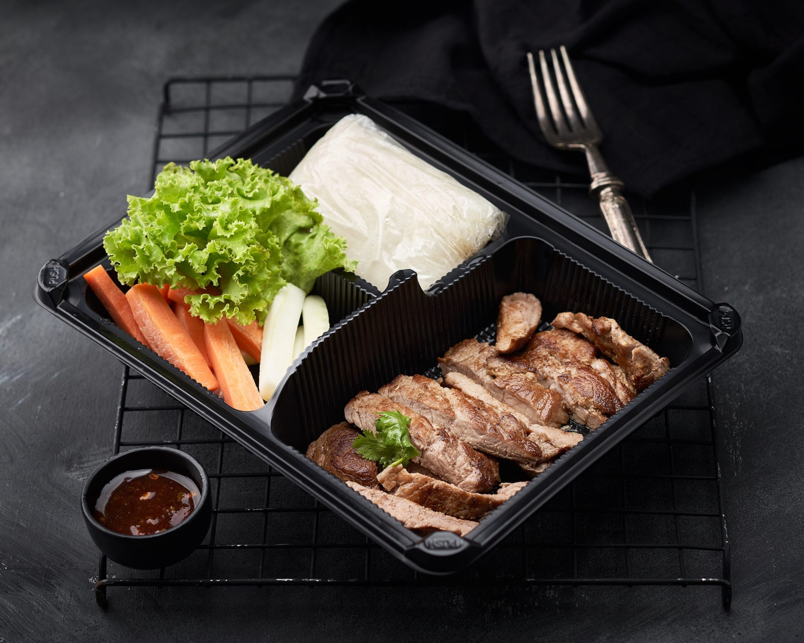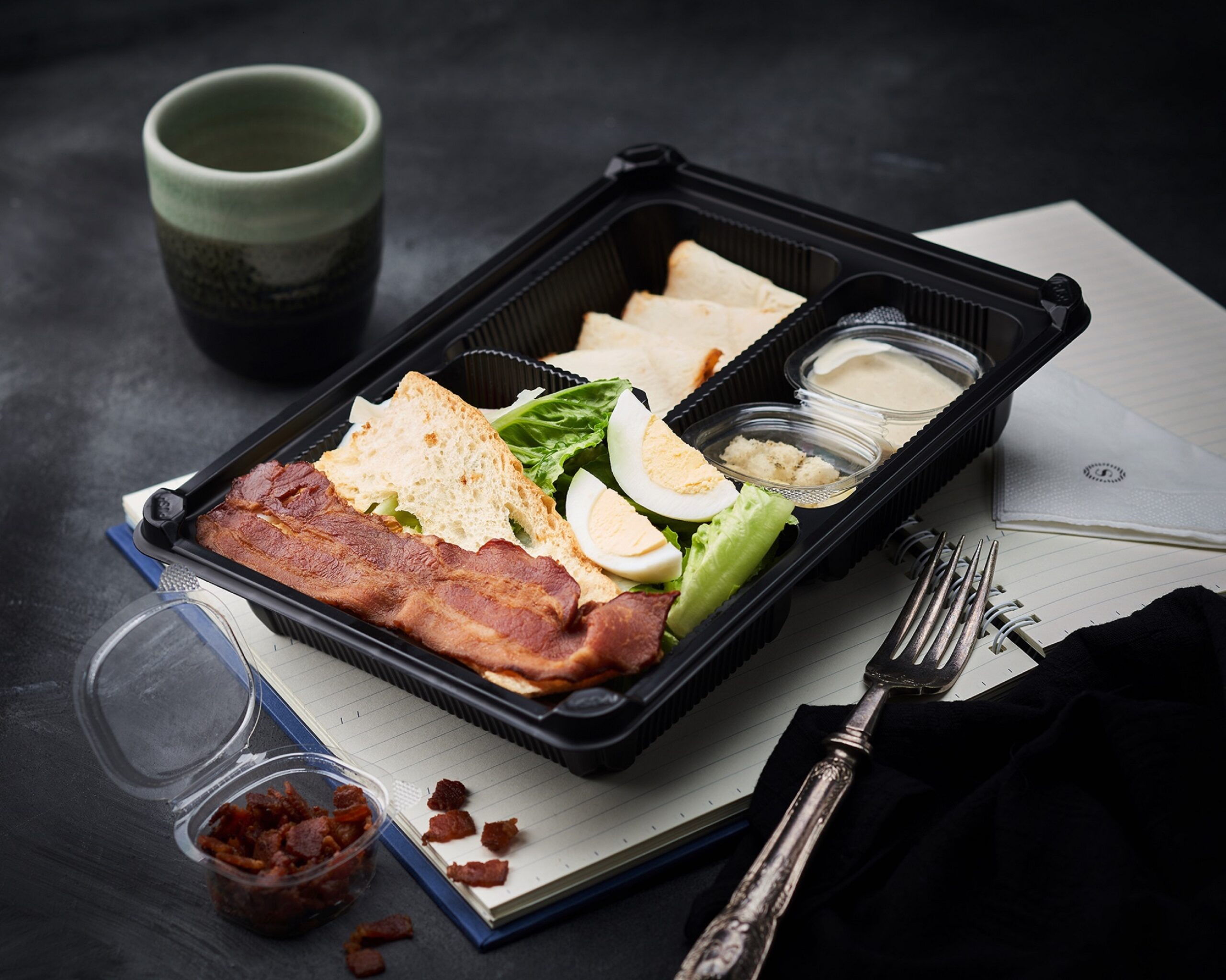 ส่วนในอีกหน้าเมนูหนึ่งจะเป็นราคาที่กระเถิบขึ้นไปหน่อย ที่กล่องละ 149 บาท พาร์ตนี้ส่วนใหญ่จะเป็นเมนูฝั่งยุโรปที่ให้ทำกินเองที่บ้านก็ไม่อร่อยแบบรสชาติของโรงแรมแน่ ๆ อาทิ อิงลิชมัฟฟินและไข่เบเนดิกต์, ออมเล็ตไข่ขาวเพื่อสุขภาพ, สลัดซีซาร์และไก่เครื่องเทศเคจัน, สลัดโซบะแซลมอนรมควัน, ลาซานญาเนื้อ และสปาเกตตี้มีตบอล นอกจากนี้ยังเอาใจสายอาหารไทยด้วยเมนูไซซ์ใหญ่จุก ๆ อย่างเนื้อย่างจิ้มแจ่วพร้อมข้าวเหนียว และพะแนงซี่โครงหมูนุ่มพร้อมข้าวให้คนชอบทานอาหารไทยได้สั่งกันรัว ๆ