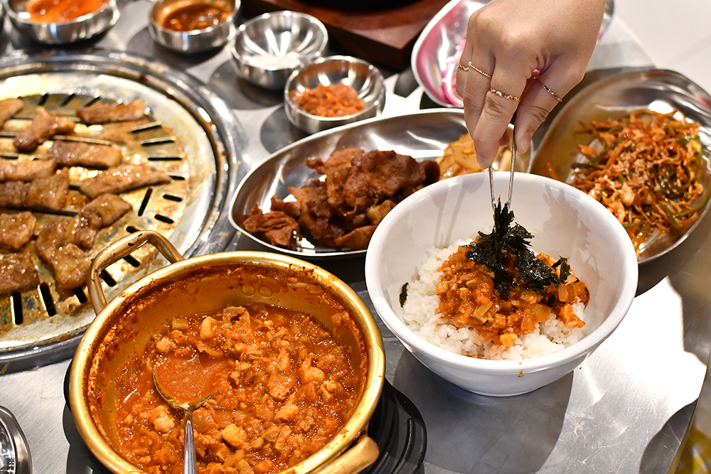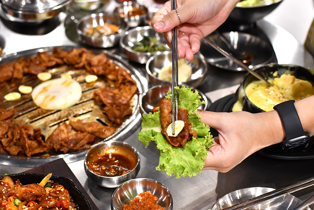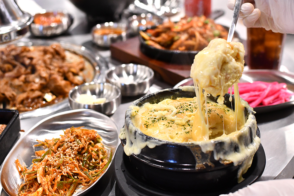 จุด ๆ นี้บอกเลยว่าด้วยความที่เนื้อหมูหมักมาดีมาก ๆ แบบไร้ที่ติ ขนาดกินแบบไม่จิ้มน้ำจิ้มก็อร่อยจนน้ำตาไหลแล้ว แต่จะจิ้มกับน้ำจิ้มสูตรพิเศษของทางร้าน หรือทานคู่กับเครื่องเคียงที่มีให้เติมฟรีไม่อั้นก็ได้ไม่ว่ากัน ซึ่งวิธีกินที่เราค้นพบว่าเวิร์กมาก ๆ ก็คือห่อด้วยผักกาด ท็อปด้วยกระเทียม ตักไข่จากเมนู Cheese Gyeran Jjim (ไข่ตุ๋นอบชีส) ใส่ลงด้านบน และราดด้วยน้ำจิ้มซัมจังนิดหน่อย แค่นี้ก็แสงพุ่งออกจากปากแน่นอน!