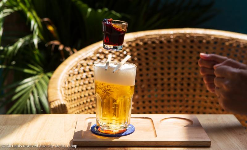 ส่วนถ้าใครเป็นสายแซ่บซี๊ด ซอสแจ่วบอมบ์คือทางของคุณแน่นอน พลาดไม่ได้เลยที่จะสั่งมาซี๊ดคู่กับ Beer Bomb อีกหนึ่งซิกเนเจอร์ของร้านนี้ อย่างวันนี้ เราเลือกสั่ง Beer Bomb Jagermeister (280 บาท) มาลอง วิธีการง่าย ๆ คือทุบโต๊ะแรง ๆ ให้แก้วช็อตเหล้าตกลงไปในแก้วเบียร์ด้านล่างแล้วยกซดให้สะใจ แต่ถ้าใครไม่ชอบ Jagermeister ที่นี่ก็ยังมี Beer Bomb Sake, Soju และ Umeshu อีกด้วย