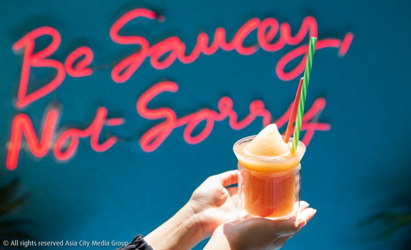 ด้วยความที่ Saucey Chicken and Beer Bomb เพิ่งเปิดได้สด ๆ ร้อน ๆ ไม่ถึงอาทิตย์ พนักงานเสิร์ฟ พนักงานต้อนรับ และตำแหน่งบาร์เทนเดอร์ เลยเป็นหน้าที่ของหมอโน้ตและพี่ ๆ หุ้นส่วนทั้งสองที่พร้อมใจกันต้อนรับเราอย่างครึกครื้นและคึกคัก ประเดิมด้วยการเสิร์ฟเวลคั่มดริ้งก์อย่าง Slush (180 บาท) เครื่องดื่มสดชื่นหัวใจที่ถือเป็นนางเอกของร้านนี้อีกหนึ่งอย่าง ทำจากน้ำผลไม้สดร้อยเปอร์เซ็นต์ ได้แก่ น้ำลิ้นจี่ แอปเปิ้ล สตรอเบอร์รี่ เสาวรส และมะนาว ว่าง่าย ๆ นางก็คือน้ำปั่นผลไม้นั่นแหละ แต่ที่เด็ดคือพอย่ำค่ำพระอาทิตย์ตกดินหลังหกโมงเย็น เจ้าน้ำผลไม้ปั่นจะถูกเพิ่มอิทธิฤทธิ์ลงไปด้วยเหล้าจินและวอดก้า ตามแต่ใจหมอโน้ตจะเทพรวดลงไป