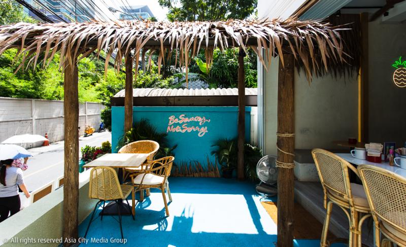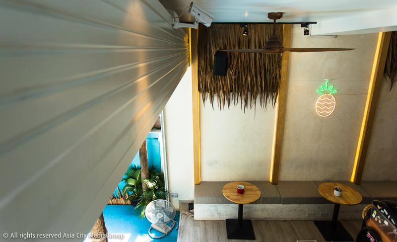 ซึ่งเป็นอะไรที่เซอร์ไพร์สเรามาก เมื่อได้รู้ว่าโปรเจ็กต์ต่อไปของผู้เชี่ยวชาญด้านผิวหนังกลับกลายมาเป็นเนรมิตชั้นล่างของคลินิกให้กลายเป็นบีชคลับขนาดย่อม ไม่ทิ้งสีสันสดใสที่เหมือนเป็นเอกลักษณ์ของคลินิกด้านบน แต่เพิ่มความชิลล์เข้าไปเต็มแมกซ์ด้วยเก้าอี้หวายทรงสูงที่หน้าบาร์ หลังคามุงจาก เครื่องทำเหล้าปั่น ไฟนีออน และบูธดีเจ !