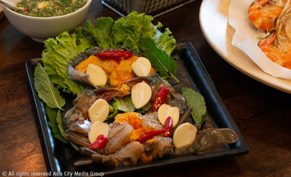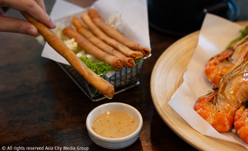 ส่วนใครที่เป็นสายกินจุบจิบแบบแซ่บ ๆ น้ำจิ้มเด็ด ๆ ก็คงไม่พลาดสั่งกุ้งแม่น้ำเผาจากอยุธยา (300 บาท) มาทานกันให้สาแก่ใจ โดยเป็นกุ้งขนาดกลางที่ความสดระดับแม็กซ์เสิร์ฟมา 6 ตัวเท่ากันทุกจาน และอีกหนึ่งเมนูฮิตติดลมบนที่ทางร้านเขาก็มีให้เลือกสั่ง ก็คือไข่ดองน้ำปลา (450 บาท) ที่ทางร้านใช้ปูทะเลไข่แน่นมาดองโซดานานจนแน่ใจว่าสะอาดปลอดภัย แล้วจึงราดด้วยน้ำปลาที่ปรุงด้วยสูตรของทางร้าน แต่ทีเด็ดของทั้งสองเมนูก็คือน้ำจิ้มซีฟู้ดที่เป็นที่ล่ำลือในความแซ่บเด็ดมาตั้งแต่ร้านดั้งเดิม เพราะขึ้นชื่อว่าใช้มะนาวแท้ มีให้เลือกจิ้มสองแบบคือสีเขียวรสเปรี้ยวเผ็ด กับสีแดงรสหวานเผ็ด แต่ถ้าจะนัวที่สุดก็คือจับผสมไปเลยจ้า
