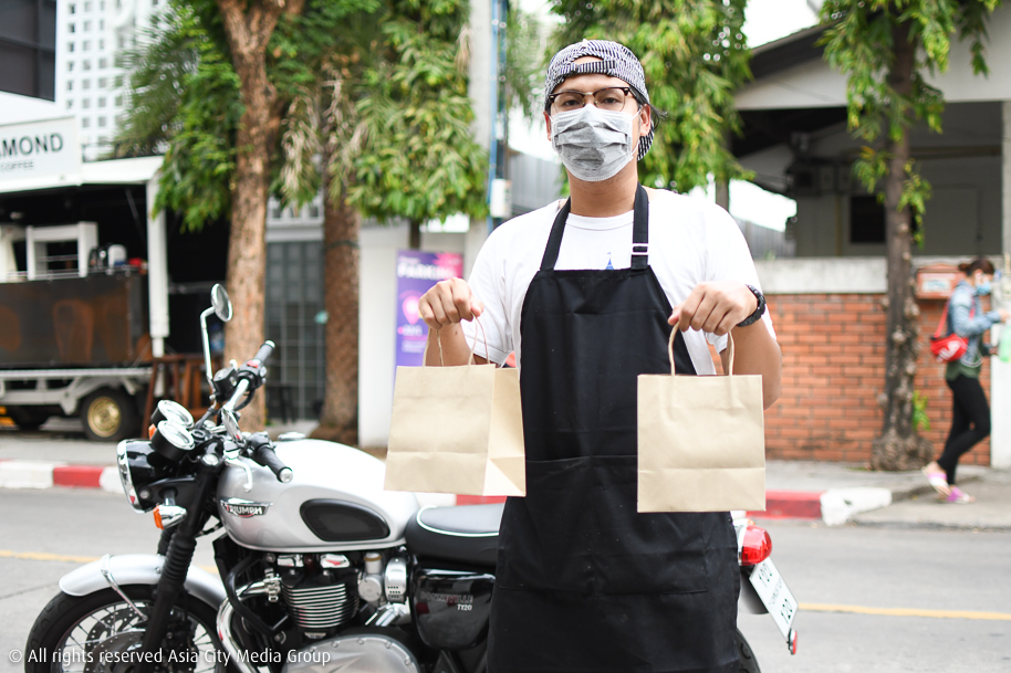 เสียงมอเตอร์ไซค์คันใหญ่จอดเทียบหน้าประตูบ้าน เราถึงกับผงะเมื่อเจอว่าเชฟภูมิ-จักรภูมิ บุณยาคม เฮดเชฟเจ้าของร้านรวมถึงผู้เข้าแข่งขันคนดังแห่งรายการ Top Chef Thailand Season 2 หอบออร์เดอร์มาส่งเองถึงบ้าน! สอบถามคร่าว ๆ เชฟบอกว่าช่วงนี้มีบางวันที่ต้องมาส่งเอง บวกกับโลเคชันที่อยู่ใกล้ร้าน ภาพที่ออกมาเลยกลายเป็นเชฟหนุ่มหน้าตางง ๆ พร้อมผ้ากันเปื้อน (ที่น่าจะลืมถอดก่อนออกจากครัว) ยืนเก้ ๆ กัง ๆ อยู่หน้าบ้าน ใครที่จะสั่งตามก็อย่าตกใจถ้าเปิดประตูมาแล้วเจอเชฟล่ะ จุด ๆ นี้สามารถขอถ่ายรูปเก็บไว้ได้ตามอัธยาศัย