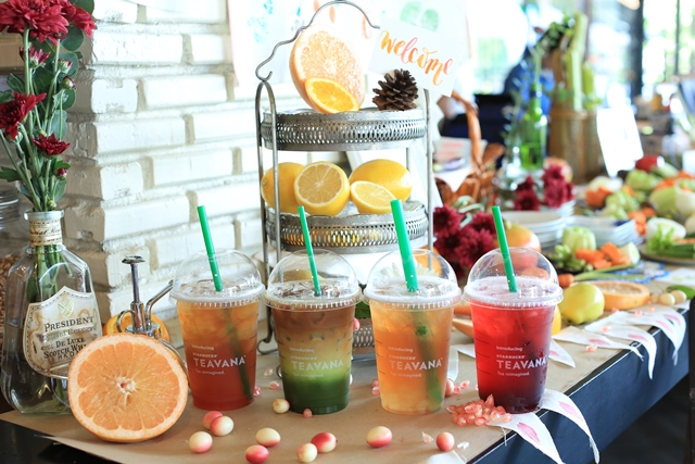 เครื่องดื่มที่เปิดตัวมาช่วงแรกนี้มีให้ลิ้มลองกันถึง 4 เมนู คือ ชาเขียวมัชฉะผสมช็อตเอสเพรซโซ (Matcha & Espresso Fusion) มีทั้งร้อนและเย็น ตามมาด้วย ชารูบี้เกรปฟรุตผสมน้ำผึ้ง (Black Tea with Ruby Grapefruit and Honey) มีทั้งร้อนและเย็น และ ชาเขียวเชค ผสมวุ้นอโลเวร่าและน้ำเชื่อมพริคลีแพร์ (Iced Shaken Green Tea with Aloe and Prickly Pear) ปิดท้ายด้วย ชาฮิบิสคัสผสมไข่มุกน้ำทับทิม (Iced Shaken Hibiscus Tea with Pomegranate Pearls)