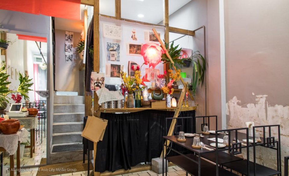 ภายในบรรยากาศแบบเรียบง่ายในทั้งสองชั้นของร้านอาหารแห่งใหม่นี้ตกแต่งแบบเรียบง่ายด้วยเก้าอี้ไม้และผนังคอนกรีต เราจะได้ลองอาหารเวียดนามภาคเหนือและกลางที่เสิร์ฟมาในใบตองและตะกร้าสาน