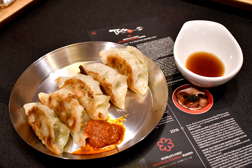 ไม่ใช่แค่ความดีงามของราเมนชามหลักเท่านั้น แต่ถ้าได้มาถึงร้านนี้แล้วทั้งที ก็อย่าลืมสั่งเมนูลับทีเด็ดอื่น ๆ มาลองด้วย อาทิ Kurobuta Niku Meshi (170 บาท) ข้าวหน้าหมูชาชูหั่นเต๋าที่ความหนาของชิ้นเนื้อ ไม่เป็นอุปสรรคต่อความนุ่มละมุนละลายในปากแต่อย่างใด และปิดท้ายด้วย Yaki Gyoza (120 บาท) เกี๊ยวซ่าทอดเสิร์ฟพร้อมน้ำมันพริกเผาและซอสโชยุทาเระรสเปรี้ยวอ่อน ๆ ที่เป็นสูตรลับเฉพาะของร้านนี้เขา