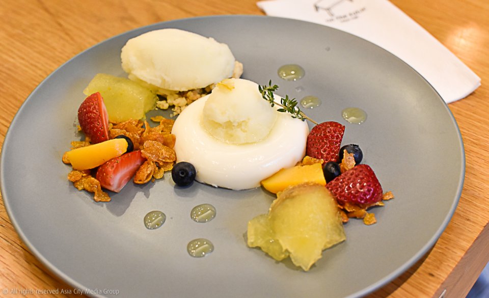 เราปิดท้ายมื้อพิเศษที่ On The Table ด้วยของหวานที่มีเฉพาะช่วงนี้เท่านั้นอย่าง Yuzu Paradise (190 บาท) ซึ่งหลาย ๆ คนก็จะรู้ถึงชื่อเสียงเรียงนามและความดีงามของพานาคอตต้าเนื้อเนียนของคาเฟ่แห่งนี้อยู่แล้ว ที่เก๋คือนางเสิร์ฟมาพร้อมเจลลี่ส้มยูสุฉบับโฮมเมด และ Sorbet ยูสุที่ช่วยเพิ่มความสดชื่นให้ขนมหวานจานนี้ได้ดีมากเว่อร์