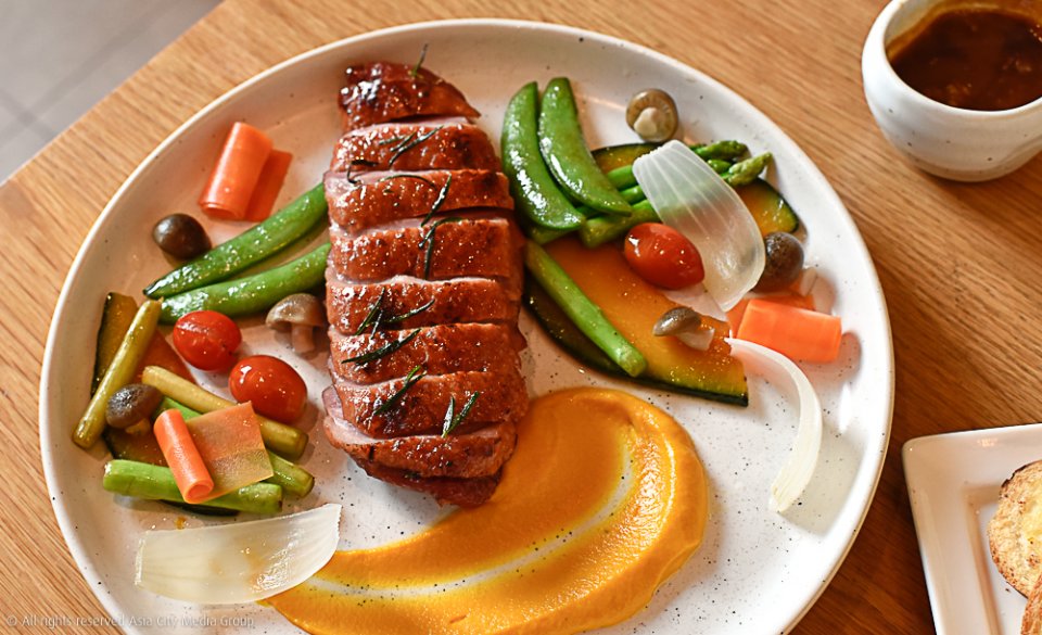 แต่ถ้าใครอยากจัดหนักจัดเต็ม เราก็มี Grilled Smoked Duck Breast with Yuzu Sauce (360 บาท) คือนางจะเสิร์ฟมาเป็นจานใหญ่ (ที่กินคนเดียวไม่น่าหมดแน่นอน) เราชอบความนุ่มชุ่มฉ่ำของเป็ดที่รมควันมาแบบได้ที่ และที่เซอร์ไพรส์มากคือรสชาติของซอสยูสุเกรวี่ที่ไม่หวานมาก บวกกับติดรสเปรี้ยวเล็ก ๆ แบบพองาม