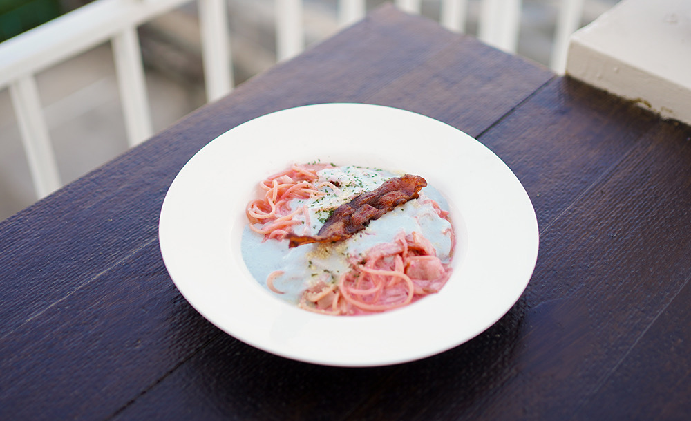 ในส่วนของคนที่ไปตอนกลางวันแล้วอยากเติมพลังด้วยอะไรง่าย ๆ ทางร้านยังมีเมนูเด็ดเป็น สปาเกตตียูนิคอร์น (290 บาท) ที่ไม่ได้มีดีแค่สีสันแสนพาสเทลสุดฟรุ้งฟริ้ง แต่ตัวซอสครีมที่เกิดจากการผสมผสานของบีตรูตและอัญชันก็มีความนัวละมุนเข้ากันดี