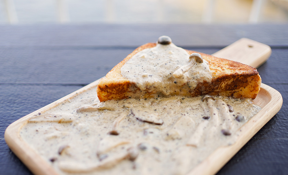 และอีกหนึ่งเมนูปิดท้ายมื้อเด็กอ้วนก็คือ ทรัฟเฟิล แอนด์ มัชรูม โทสต์ (220 บาท) ขนมปังปิ้งชิ้นโตสุดฉ่ำเนยที่ราดมาด้วยครีมเห็ดและทรัฟเฟิลสุดเข้มข้น เป็นเมนูที่เราไม่คิดว่าจะมาเจอที่บาร์ แต่พอได้ชิมแล้วติดใจมาก ๆ จุดที่เด่นที่สุดก็คือกลิ่นทรัฟเฟิลที่หอมฟุ้งตั้งแต่ยกมาเสิร์ฟแล้ว