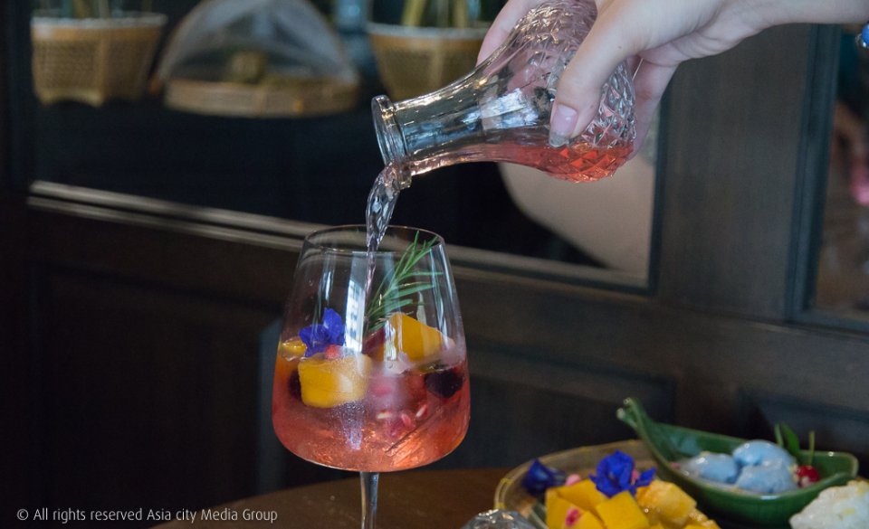 เจอแดดข้างนอกร้อน ๆ เมนูไอศกรีมน่าจะตอบโจทย์อย่าง ไอศกรีมกะทิ-ข้าวเหนียวมะม่วง (180 บาท) ที่เสิร์ฟมาในกระจาดสานดูคลาสสิกมาก ๆ มะม่วงหอมหวาน หรือถ้าอยากสดชื่นก็ต้องลอง น้ำปรุง (150 บาท) เป็นเครื่องดื่มโซดาผลไม้และมีผลไม้มาในแก้วทั้งมะม่วง บลูเบอร์รี่ และทับทิม รีเฟรชได้ดีสุด ๆ