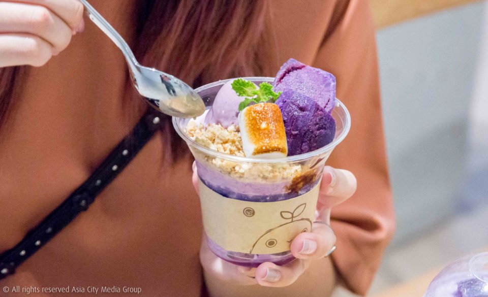 ส่วนมันม่วงก็ไม่ได้น้อยหน้านะอย่าง Murasaki Potato Parfait (125 บาท) ที่อัดแน่นด้วยมันม่วงล้วน ๆ ทั้งไอศกรีมซอฟต์เสิร์ฟที่ทำจากมันมุราซากิมาเผาและเหนียวนุ่มยิ่งขึ้นเพราะเอาเนื้อเข้าไปปั่นด้วย ! แถมยังมีมันม่วงชื่อมอีก เพิ่มความหอมด้วยมาชแมลโลว์เผาเหนียวนุ่ม เข้ากันดีสุด ๆ หรืออย่าง Murasaki Potato Bliss (125 บาท) ก็จะเป็นเนื้อมันม่วงปั่นพร้อมกรุบ ๆ ด้วยโอรีโอ้ครัมเบิ้ล เนื้อจะหนัก ๆ แน่น ๆ หน่อย เห็นถ้วยเล็ก ๆ แบบนี้แต่ช่วยกินกันสองคนยังได้ เรารู้สึกว่าเนื้อหนักไปนิด ถ้ามีคนช่วยกินก็ดี