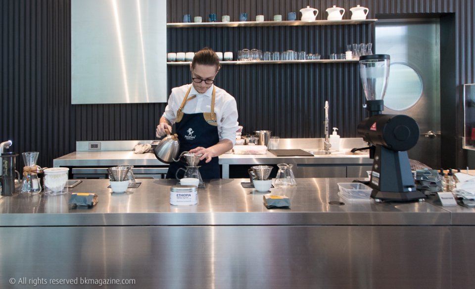 นอกจากนี้ยังแบ่งพื้นที่ของบาร์อีกครึ่งหนึ่งให้คนรักกาแฟสโลว์บาร์แบบเต็ม ๆ ซึ่งถ้าไปในช่วงนี้ก็มีโอกาสได้ชิมกาแฟดริปจากหนุ่มบาริสต้างานดี (มาก) อย่าง Gabriel Carroll ที่เพิ่งคว้าแชมป์ Romania World Brewers Cup 2018 ไปหมาด ๆ จุด ๆ นี้ก็เลือกไม่ถูกเลยว่าอยากชิมอะไรมากกว่ากัน โอ๊ย !