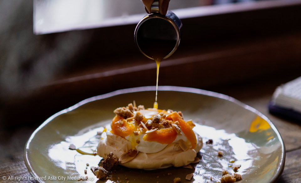 และก็ยังจะใจดีมีเอสเพรสโซ่บาร์เล็ก ๆ ไว้ให้สั่งด้วยเหมือนกัน โดยมีราคาเริ่มต้นที่ 45-75 บาท บวกกับเมนูสายรีเฟรชชิ่งหนึ่งเดียวของร้านอย่าง Fresh Lemonade (50 บาท) ที่เราลองสั่งมาดูดเล่น ๆ แต่ดันพบว่ามันเข้ากันดีมาก ๆ กับเมนูพิเศษประจำวันของร้านนี้อย่าง Tropical Pavlova with Passion Fruit Jug (180 บาท)