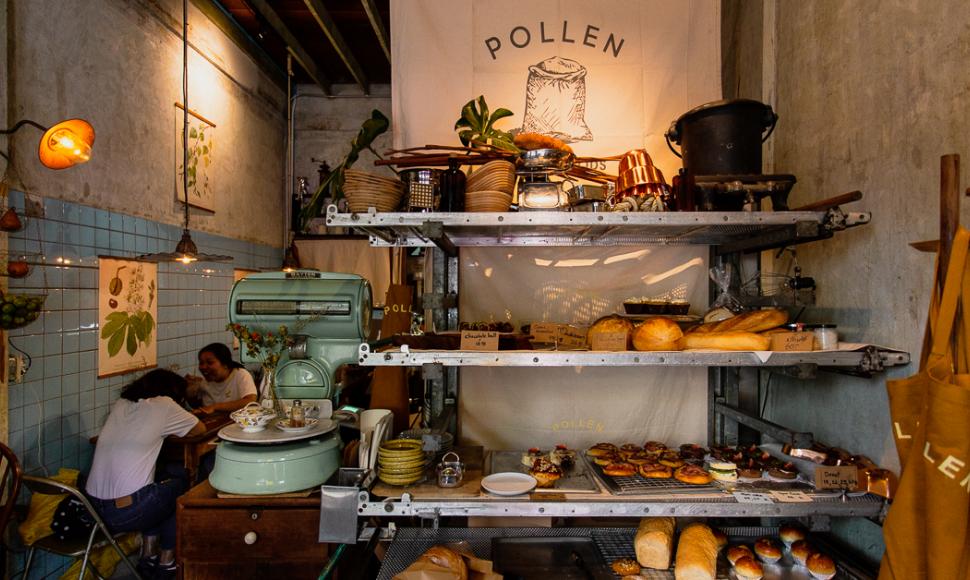 ถ้าใครเคยได้ยินชื่อร้านอาหารสไตล์เมดิเตอร์เรนียนสุดอินดี้อย่าง 7 Spoons รวมไปถึงร้านไอศกรีมสายโหดอย่าง Hazel's Icecream Parlor and Fine Drinks ก็น่าจะเดาทางถูกตั้งแต่เห็นสไตล์การตกแต่งหน้าร้านแล้ว เพราะ Pollen Baked Goods คือร้านใหม่จากฝีมือเจ้าของคนเดียวกันคือพี่โจ็ก-สมเกียรติ ไพโรจน์มหกิจ พี่ใหญ่ผู้คร่ำหวอดในวงการ F&B เมืองไทย ที่วันดีคืนดีก็นึกอยากจะมาเปิดร้านเบเกอรี่ในย่านเมืองเก่าก็ทำเลยจริงจังแบบไม่เว้นที่ว่างให้เราทันตั้งตัว !