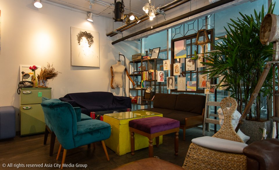 ถ้าใครยังนึกภาพไม่ออกว่าการแต่งร้านแบบ Dadaism เป็นยังไง เราขอให้ลองนึกภาพว่ามีปลาทองอ้วนกลมสองตัวคอยต้อนรับเราอยู่ในตู้ปลาที่ทำจากทีวี เดินเข้าไปอีกนิดก็จะเจอกับเปียโนและเก้าอี้ตัดผมวางอยู่หน้าทางเข้าห้องน้ำ หรือจะเป็นบางส่วนของรั้วบ้านที่กั้นเป็นระเบียงบนชั้นสองของร้าน นี่ยังไม่รวมต้นไม้ใบหญ้า รูปวาด และผนังร้านที่เจ้าของร้านเนรมิตเองกับมือ