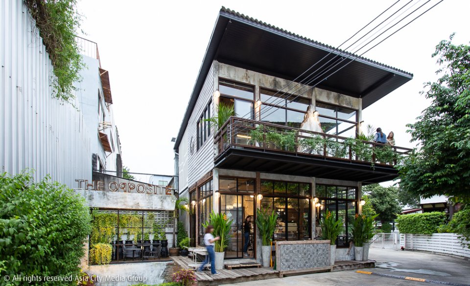 หากใครแวะมาย่าน Old town อย่างนางเลิ้งที่โด่งดังในเรื่องอาหารการกินและความแอนทีคของสถาปัตยกรรม เราขอพาไปรู้จักกับคาเฟ่เปิดใหม่ที่ซ่อนตัวอยู่ในซอยหลังตึกแถวถนนพะเนียงใกล้วัดโสมนัสอย่าง The Oqposite (ดิ-อ๊อบ-โพ-สิท) คาเฟ่สไตล์อินดัสเทรียลลอฟท์ขนาดสองชั้นภายใต้คอนเซ็ปต์การทำบ้านใหม่ให้ดูเก่า เป็นความ "เก่าในใหม่-ใหม่ในเก่า" ที่ส่งต่อตั้งแต่หน้าประตูไปยันเมนูอาหาร